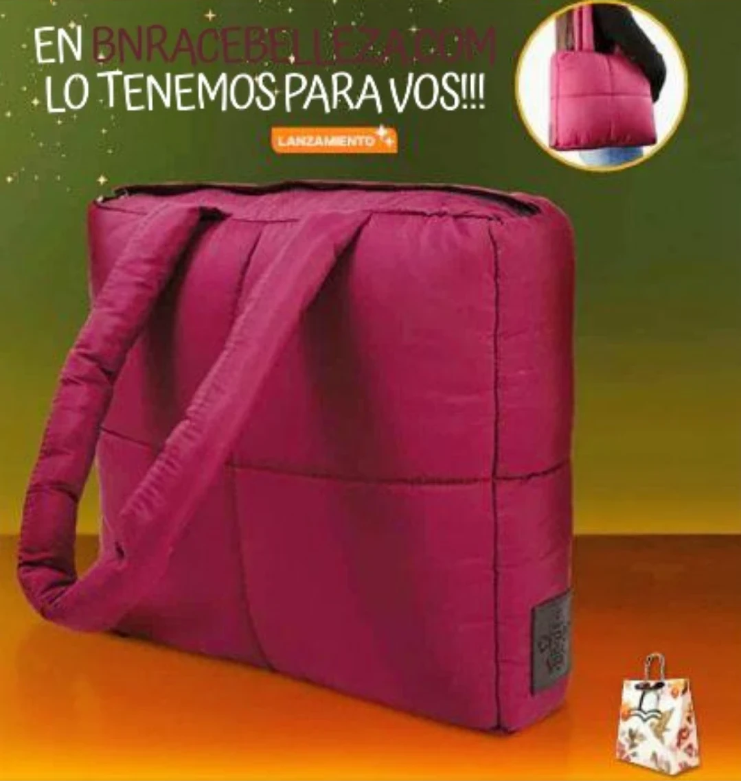 Bolso Puffer Material Poliester, Color Bordó, Medidas: 28 de largo x 26 cm de alto x 8 de profundidad
