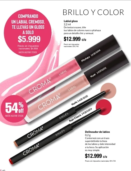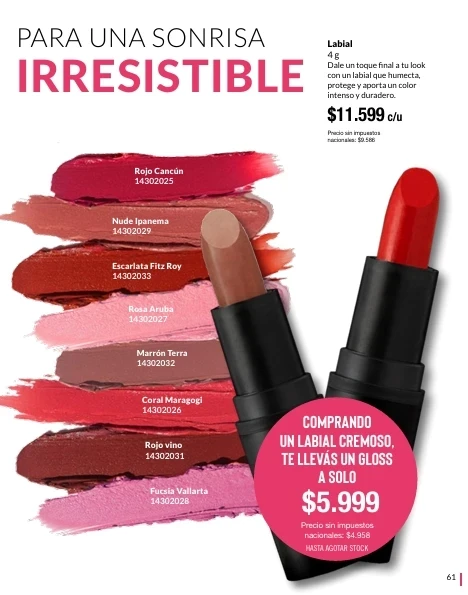 Para una sonrisa irresistible, enviame el código de tu color preferido y el GLOSS con el 54% de DESCUENTO!!! de $12.999.- llevalo a $5999.-