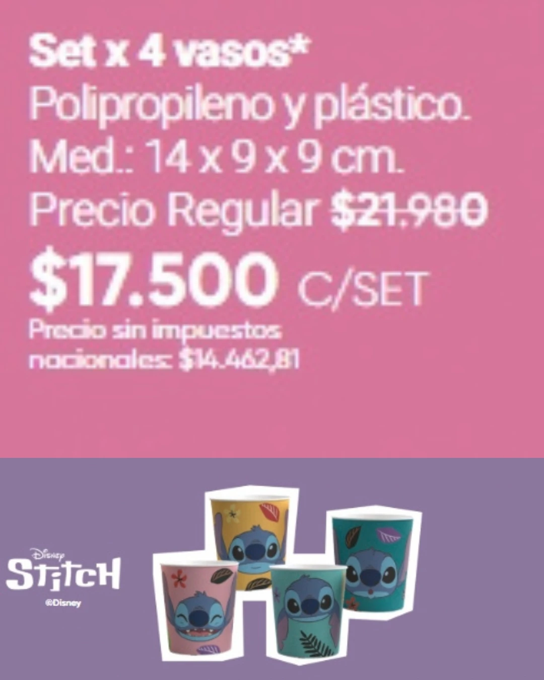 Set 4 Vasos - Disney, Stitch